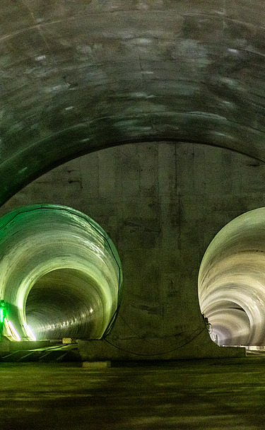 A special feature of the Brenner Base Tunnel is the continuous exploratory tunnel beneath the two single-track tubes. It is located in the middle at a depth of around 12 m and has a diameter of 5 to 8 m. In total, the tunnel system of the Brenner Base Tunnel comprises approx. 230 tunnel kilometres.